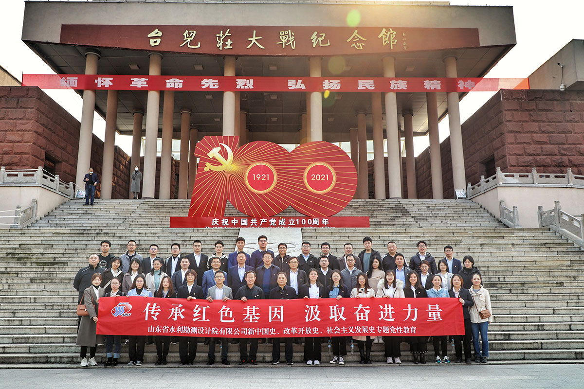 為傳承紅色基因、汲取奮進(jìn)力量,扎實(shí)推進(jìn)黨史學(xué)習(xí)教育走深走實(shí),10月25日至26日山東省水利勘測(cè)設(shè)計(jì)院有限公司黨委組織部分黨員干部及近三年新入職黨員赴臺(tái)兒莊,圍繞“新中國(guó)史、改革開(kāi)放史、社會(huì)主義發(fā)展史”開(kāi)展專題黨性教育學(xué)習(xí)。公司黨委副書(shū)記王洪濤、紀(jì)委書(shū)記馬慶軍參加此次活動(dòng)。