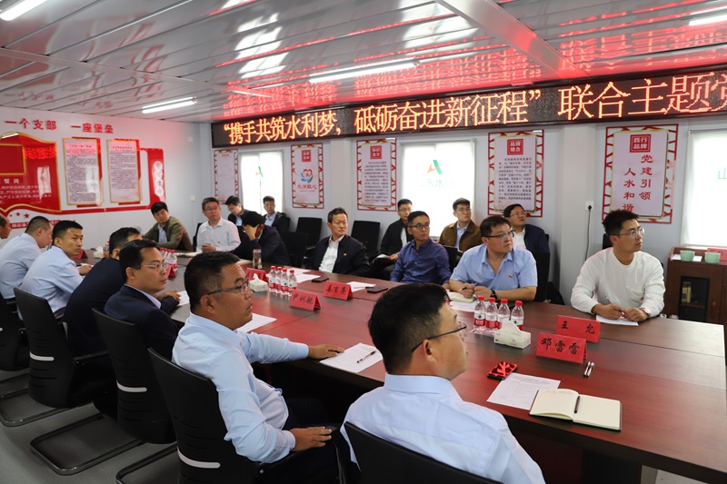 10月14日,山東省水利勘測設計院有限公司(以下簡稱山東水設)施工概預算院黨支部、工程設計一院黨支部、智慧水利院黨支部與山東省水利工程局有限公司(以下簡稱山東水局)第七工程公司黨支部在夏津縣北城水庫項目部開展以“攜手共筑水利夢,砥礪奮進新征程”為主題的聯合主題黨日活動。山東水設黨委副書記王洪濤、山東省水利工程局黨委副書記趙光輝參加了本次活動。