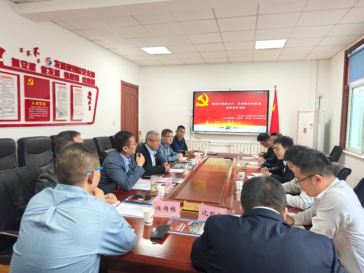 為全面加強(qiáng)基層黨支部建設(shè),增強(qiáng)黨組織活力,近日,山東省水利勘測設(shè)計(jì)院有限公司(以下簡稱山東水設(shè))發(fā)展規(guī)劃院黨支部、企業(yè)發(fā)展部黨支部、市場經(jīng)營部黨支部、施工概預(yù)算院黨支部與中建八局第二建設(shè)有限公司設(shè)計(jì)研究院黨總支開展“黨建共建聚合力,協(xié)同聯(lián)動(dòng)促發(fā)展”聯(lián)合主題黨日活動(dòng)。山東水設(shè)總工程師單既連、中建八局第二建設(shè)有限公司設(shè)計(jì)研究院黨總支書記梁汝鳴參加活動(dòng)。