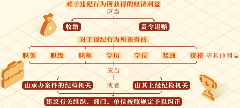 《中國共產(chǎn)黨紀(jì)律處分條例》對于違紀(jì)行為所獲利益如何處理作出了規(guī)定。主要分為兩種情況——