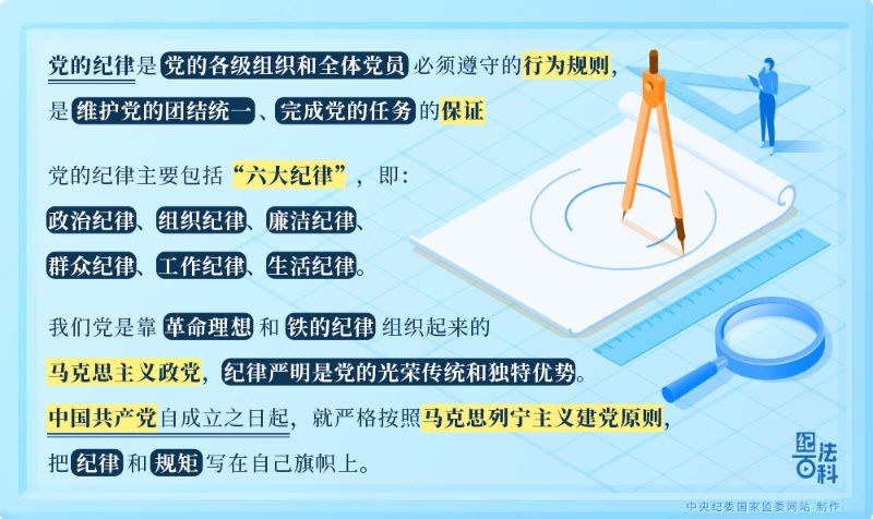 《中國共產(chǎn)黨章程》第三十九條規(guī)定,黨的紀律是黨的各級組織和全體黨員必須遵守的行為規(guī)則,是維護黨的團結(jié)統(tǒng)一、完成黨的任務的保證。黨組織必須嚴格執(zhí)行和維護黨的紀律,共產(chǎn)黨員必須自覺接受黨的紀律的約束。