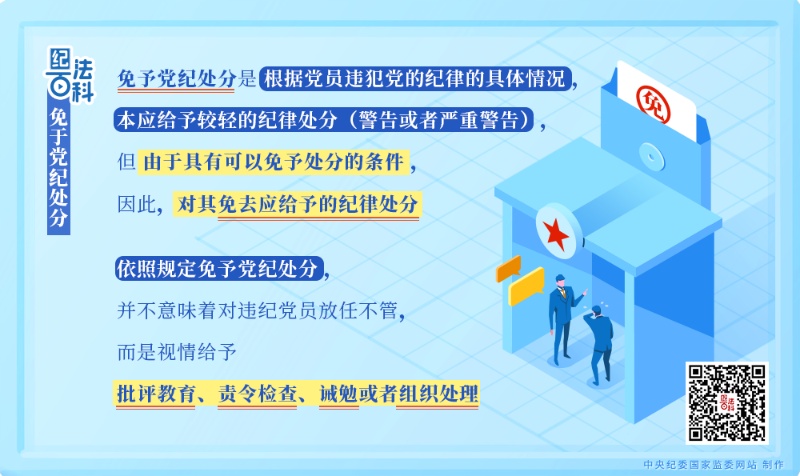 免予黨紀(jì)處分是根據(jù)黨員違犯黨的紀(jì)律的具體情況,本應(yīng)給予較輕的紀(jì)律處分(警告或者嚴(yán)重警告),但由于具有可以免予處分的條件,因此,對(duì)其免去應(yīng)給予的紀(jì)律處分。依照規(guī)定免予黨紀(jì)處分,并不意味著對(duì)違紀(jì)黨員放任不管,而是視情給予批評(píng)教育、責(zé)令檢查、誡勉或者組織處理。