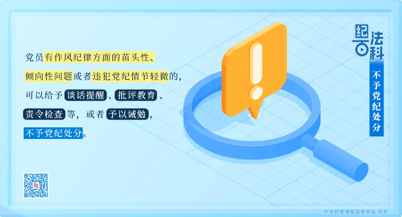 《中國共產(chǎn)黨紀律處分條例》第十九條第二款規(guī)定:黨員有作風紀律方面的苗頭性、傾向性問題或者違犯黨紀情節(jié)輕微的,可以給予談話提醒、批評教育、責令檢查等,或者予以誡勉,不予黨紀處分。
