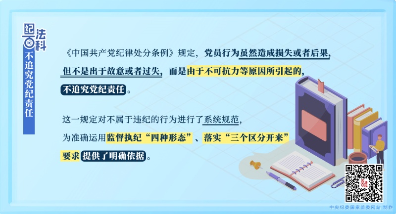 《中國(guó)共產(chǎn)黨紀(jì)律處分條例》第十九條第三款規(guī)定:“黨員行為雖然造成損失或者后果,但不是出于故意或者過(guò)失,而是由于不可抗力等原因所引起的,不追究黨紀(jì)責(zé)任?!?/span>