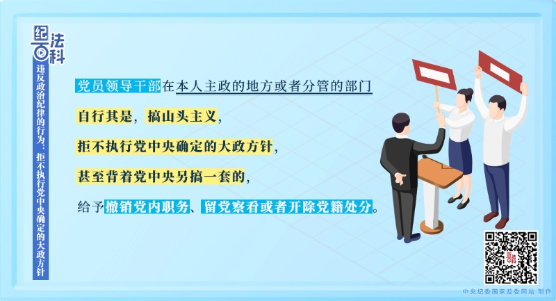 此規(guī)定的違紀(jì)主體是擔(dān)任一定職務(wù)的黨員領(lǐng)導(dǎo)干部。黨員領(lǐng)導(dǎo)干部作為“關(guān)鍵少數(shù)”,在帶頭執(zhí)行和組織落實(shí)黨中央大政方針上,擔(dān)負(fù)著重要使命,發(fā)揮表率作用。黨員領(lǐng)導(dǎo)干部自行其是,搞山頭主義,不能做到令行禁止,嚴(yán)重影響黨中央決策部署落到實(shí)處,危害極大,必須給予相應(yīng)黨紀(jì)處分。