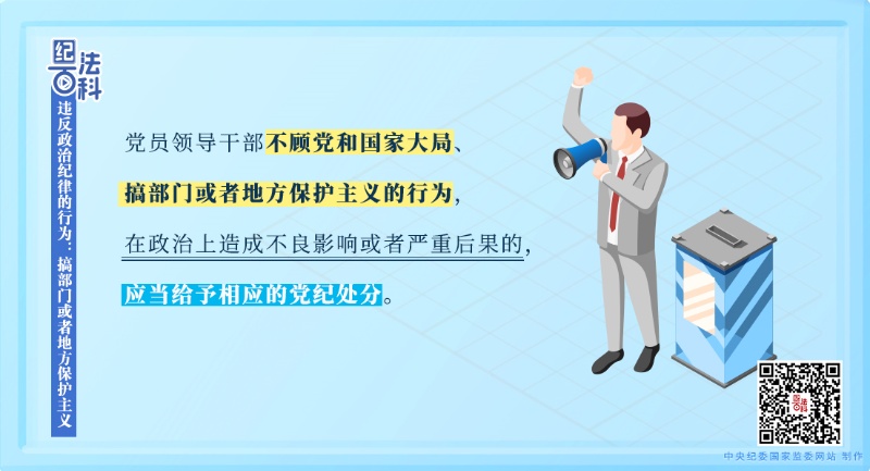 執(zhí)紀(jì)監(jiān)督中發(fā)現(xiàn),一些地區(qū)和部門的黨員領(lǐng)導(dǎo)干部不能正確處理全局和局部、中央和地方的關(guān)系,存在自行其是,搞本位主義、分散主義的問題。比如,有的各自為政、畫地為牢,不關(guān)心建設(shè)全國統(tǒng)一的大市場、暢通全國大循環(huán),只一門心思建設(shè)本地區(qū)本區(qū)域小市場、搞自己的小循環(huán),或者以“內(nèi)循環(huán)”的名義搞地區(qū)封鎖;有的出臺(tái)歧視外資企業(yè)和外地企業(yè)、實(shí)行地區(qū)保護(hù)的優(yōu)惠政策,設(shè)置歧視性、隱蔽性的區(qū)域市場壁壘,等等。對這些不顧黨和國家大局、搞部門或者地方保護(hù)主義的行為,在政治上造成不良影響或者嚴(yán)重后果的,應(yīng)當(dāng)給予相應(yīng)的黨紀(jì)處分。