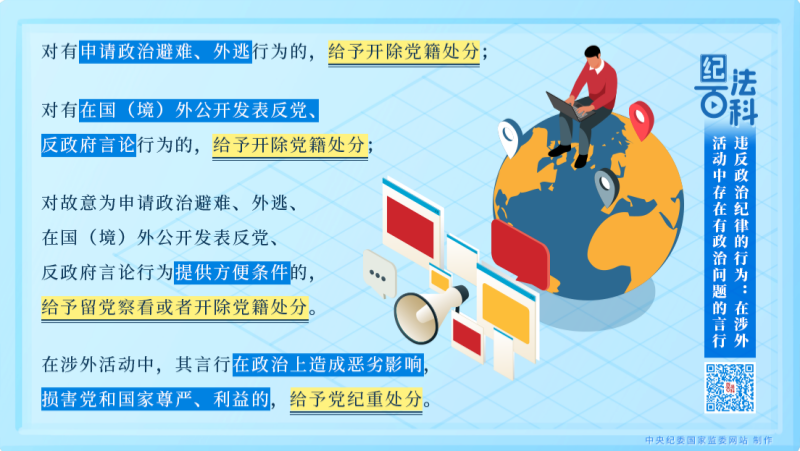《中國共產(chǎn)黨紀律處分條例》第七十二條、第七十三條對涉外活動中存在有政治問題的言行行為列出負面清單,作出處分規(guī)定。