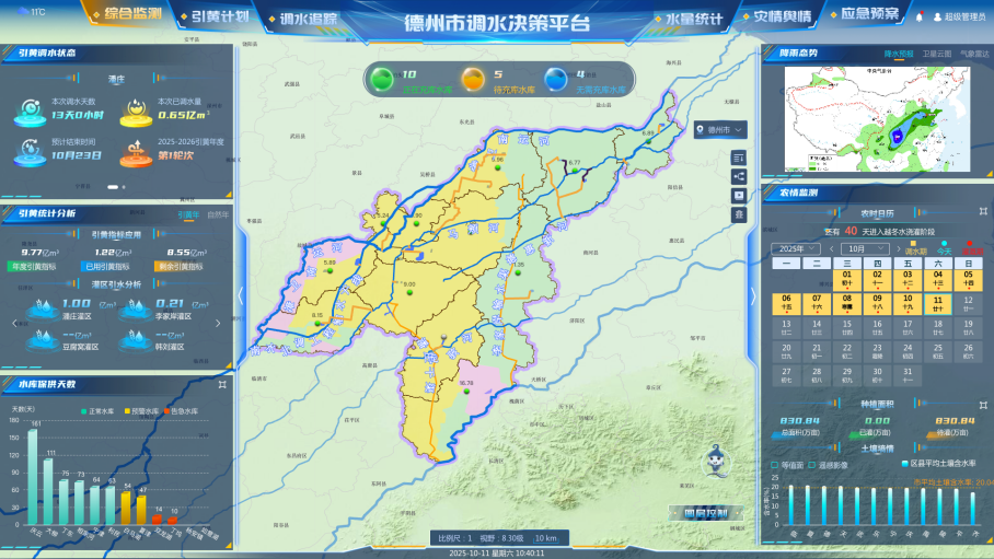 針對(duì)平原地區(qū)水利治理難題,“魯西北典型平原區(qū)域數(shù)字孿生市級(jí)水網(wǎng)工程項(xiàng)目”以德州為試點(diǎn),通過集成GIS+BIM及水文水動(dòng)力耦合仿真等數(shù)字孿生技術(shù),打造“天空地水工”一體化智慧平臺(tái)。通過構(gòu)建防汛與引調(diào)水聯(lián)合調(diào)度系統(tǒng),項(xiàng)目首次實(shí)現(xiàn)平原區(qū)域“防洪安全”與“供水保障”的協(xié)同優(yōu)化,有效化解自然河道引調(diào)水與防洪的沖突矛盾,為華北平原市級(jí)水網(wǎng)全鏈條數(shù)字化管控提供了“山東樣板”。