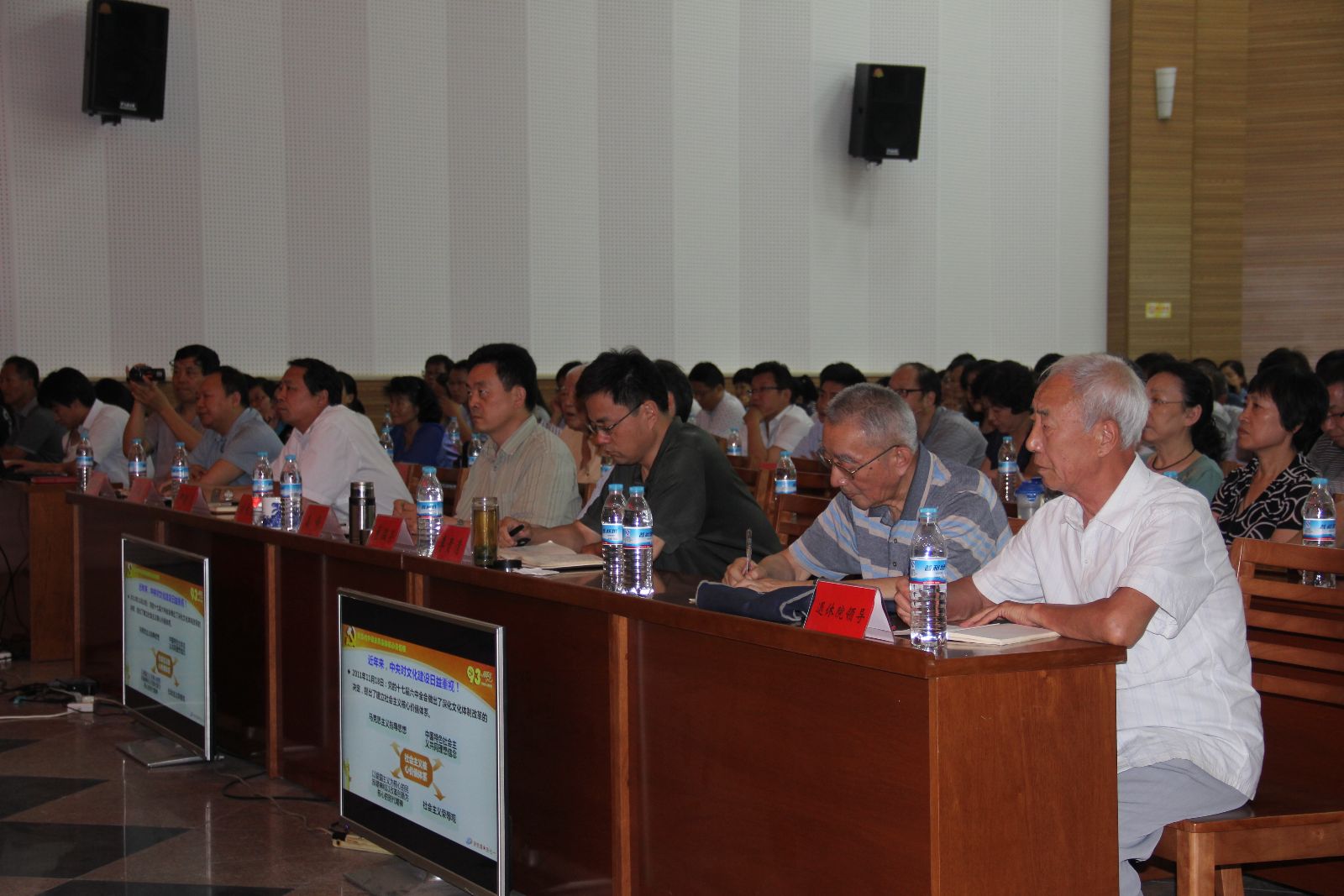為了慶祝中國共產(chǎn)黨成立93周年,6月30日下午, 我院舉辦了“講黨課•慶七一”活動(dòng)。黨委書記劉紹清同志作了題為“論當(dāng)代中國應(yīng)具備的核心價(jià)值觀——學(xué)習(xí)習(xí)近平總書記《青年要自覺踐行社會主義核心價(jià)值觀》的心得體會”的報(bào)告。黨委副書記、院長劉長余同志主持會議,院副科級以上干部、主任工程師、高級職稱以上人員、在職黨員、預(yù)備黨員、入黨積極分子、職工代表、離退休院領(lǐng)導(dǎo)、離退休支部成員共240人參加了會議。