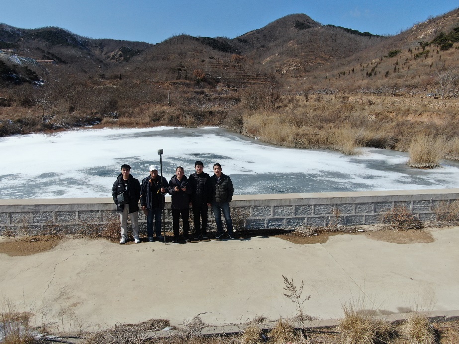 首日,項(xiàng)目組先到蓬萊區(qū)水務(wù)局詳細(xì)了解了本次排查任務(wù)。為了讓大家熟悉塘壩情況,水務(wù)局兩位負(fù)責(zé)人帶領(lǐng)項(xiàng)目組一同前往蓬萊區(qū)登州街道的2座塘壩,旨在確定后續(xù)排查任務(wù)中的重要隱患點(diǎn),統(tǒng)一記錄資料格式、記錄重點(diǎn)、影像資料等。2月中旬,蓬萊仍然是刺骨的冷。一到現(xiàn)場(chǎng),孫見鋒、邢仕強(qiáng)立即向水務(wù)局負(fù)責(zé)人了解塘壩基本情況,李子民、郭曉鎮(zhèn)使用無(wú)人機(jī)進(jìn)行拍攝,趙連濤、李宏達(dá)進(jìn)行建筑物高程及尺寸測(cè)量,吳春澍和瞿立新對(duì)現(xiàn)場(chǎng)關(guān)鍵問(wèn)題進(jìn)行補(bǔ)充、指導(dǎo)。首日結(jié)束,項(xiàng)目組利用晚飯間隙對(duì)工作成果進(jìn)行了小結(jié),對(duì)第二天的工作進(jìn)行安排。