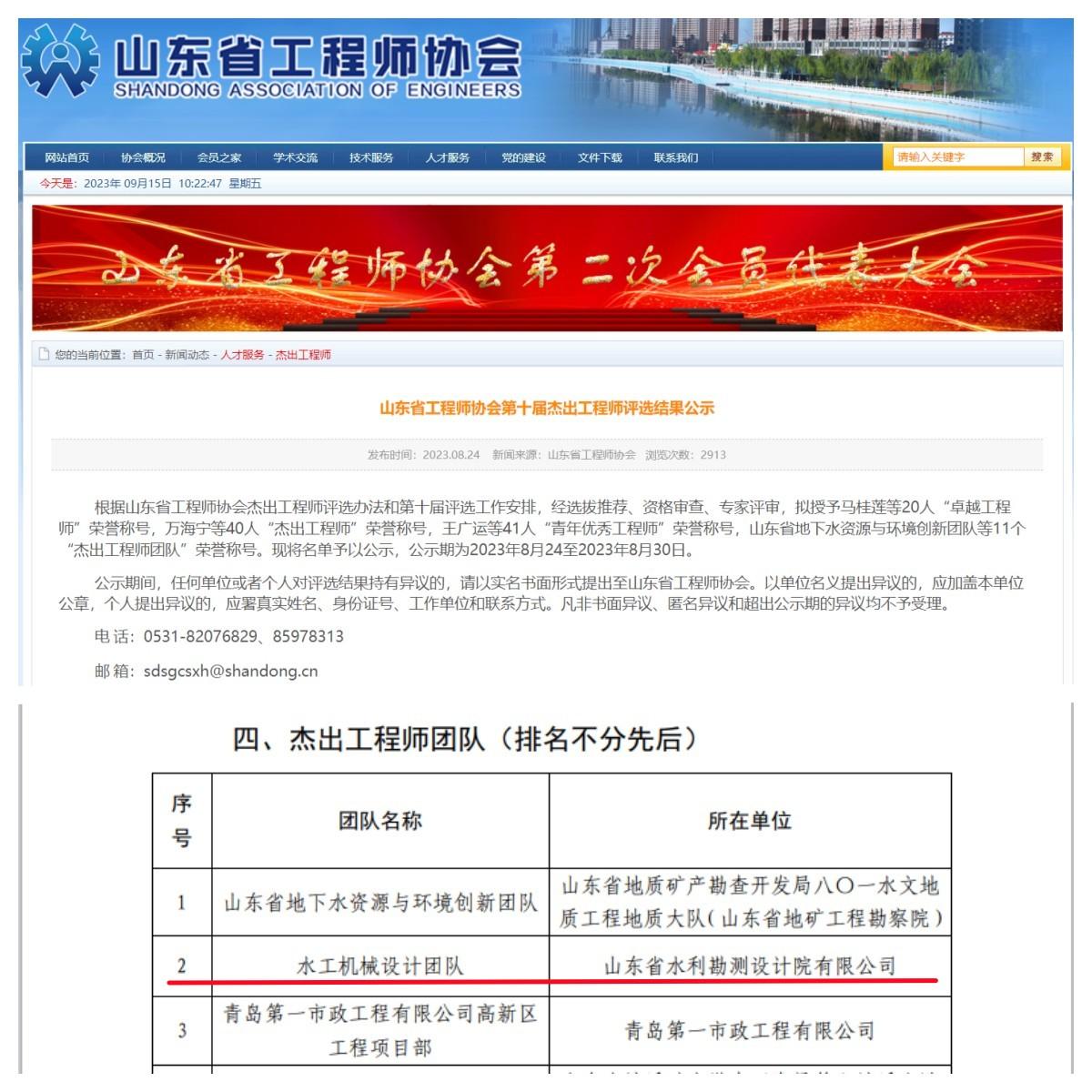 近日,山東省工程師協(xié)會(huì)第十屆“杰出工程師”評(píng)選結(jié)果揭曉,山東省水利勘測(cè)設(shè)計(jì)院有限公司(以下簡(jiǎn)稱山東水設(shè))水機(jī)與市政設(shè)計(jì)院“水工機(jī)械設(shè)計(jì)團(tuán)隊(duì)”榮獲“杰出工程師團(tuán)隊(duì)”榮譽(yù)稱號(hào)?!敖艹龉こ處煛痹u(píng)選旨在弘揚(yáng)科學(xué)家精神、工匠精神,鼓勵(lì)研發(fā)創(chuàng)新,積極打造卓越工程師隊(duì)伍,推選出為我省科技進(jìn)步和經(jīng)濟(jì)發(fā)展作出突出貢獻(xiàn)的工程技術(shù)人員。