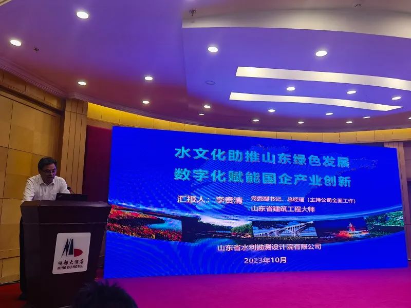 山東省水利勘測設(shè)計院有限公司黨委副書記、董事、總經(jīng)理(主持公司全面工作)李貴清參加了本次會議,并應(yīng)邀在大會上做了“水文化助推山東綠色發(fā)展,數(shù)字化賦能國企產(chǎn)業(yè)創(chuàng)新”的主題報告。在主題報告中,李貴清總經(jīng)理簡要介紹了我公司轉(zhuǎn)企改制以來的發(fā)展情況,并就國家水網(wǎng)構(gòu)建、水文化建設(shè)、數(shù)字化轉(zhuǎn)型和產(chǎn)業(yè)發(fā)展等具體問題交流了看法。構(gòu)建 “一軸三環(huán)、七縱九橫、兩湖多庫”的山東現(xiàn)代水網(wǎng),是省委、省政府深入貫徹習近平總書記重要指示要求,著力破解全省水資源瓶頸制約的關(guān)鍵一招,也是當前一段時期山東水利工作的中心任務(wù)。李貴清總經(jīng)理強調(diào),我公司將聚焦國家戰(zhàn)略,體現(xiàn)國企擔當,全力推動山東現(xiàn)代水網(wǎng)建設(shè)。針對水文化建設(shè),李貴清總經(jīng)理指出,我公司結(jié)合齊魯大地深厚文化底蘊,努力找尋水文化和水利工程在建筑形態(tài)、空間塑造、節(jié)點展現(xiàn)和綠化美化等方面的結(jié)合點,融入特色水文化元素,建設(shè)了一批水文化內(nèi)涵豐富工程。在規(guī)劃設(shè)計中我們將堅持水資源、水安全、水文化、水環(huán)境、水生態(tài)“五水統(tǒng)籌”,積極推動“工程+文化”建設(shè)。針對數(shù)字化轉(zhuǎn)型和產(chǎn)業(yè)創(chuàng)新發(fā)展,李貴清總經(jīng)理通過對我公司近年來數(shù)字化轉(zhuǎn)型和數(shù)字產(chǎn)業(yè)發(fā)展的經(jīng)驗總結(jié),提出了水利水電勘測設(shè)計單位要持續(xù)探索水利數(shù)字化產(chǎn)業(yè)商業(yè)模式創(chuàng)新、不斷提升企業(yè)的數(shù)字經(jīng)濟能力和延伸構(gòu)建產(chǎn)業(yè)互聯(lián)網(wǎng)平臺等三條建議。