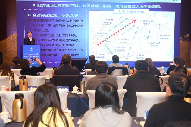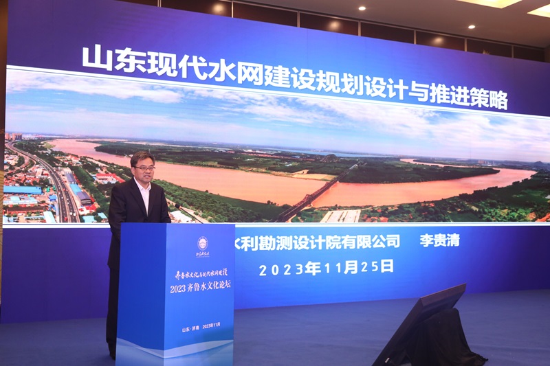 2023年11月25日,由山東省水利廳、山東省文化和旅游廳、山東社會(huì)科學(xué)院、山東黃河河務(wù)局、山東省人民政府發(fā)展研究中心共同主辦,山東省水利勘測(cè)設(shè)計(jì)院有限公司、山東省水利科學(xué)研究院、山東省水文化學(xué)會(huì)(籌)具體承辦的2023齊魯水文化論壇在濟(jì)南開幕。本次論壇以“齊魯水文化與現(xiàn)代水網(wǎng)建設(shè)”為主題,旨在貫徹落實(shí)新時(shí)代治水思路,打造“以水鑄魂、水興齊魯”水利特色文化品牌,講好“中國(guó)故事”山東水利篇章。大會(huì)設(shè)一個(gè)主論壇和兩個(gè)平行論壇。山東省副省長(zhǎng)陳平出席開幕式并致辭,水利部原黨組副書記、副部長(zhǎng)矯勇,中國(guó)工程院院士、山東大學(xué)校長(zhǎng)李術(shù)才,山東省政協(xié)原副主席、齊魯文化研究院院長(zhǎng)王志民在主論壇作主旨演講。會(huì)議邀請(qǐng)水利部及其直屬單位、清華大學(xué)、河海大學(xué)、中國(guó)水利水電科學(xué)研究院等多家科研院所單位的全國(guó)著名水文化、水利專家作專題報(bào)告。水利部有關(guān)司局、直屬事業(yè)單位及流域機(jī)構(gòu)負(fù)責(zé)人,全國(guó)各?。ㄗ灾螀^(qū)、直轄市)水文化和現(xiàn)代水網(wǎng)建設(shè)領(lǐng)域?qū)<覍W(xué)者,山東省直有關(guān)部門(單位)、省內(nèi)高校及科研機(jī)構(gòu)、各地市水利、文旅、黃河河務(wù)部門有關(guān)負(fù)責(zé)人等共計(jì)150余人參加本次論壇。公司黨委副書記、董事、總經(jīng)理(主持公司全面工作)李貴清,黨委副書記、工會(huì)主席王洪濤,黨委委員、副總經(jīng)理劉帥,以及辦公室、發(fā)展規(guī)劃院、工程規(guī)劃院、生態(tài)環(huán)境院、智慧水利院30余人參加了本次論壇。