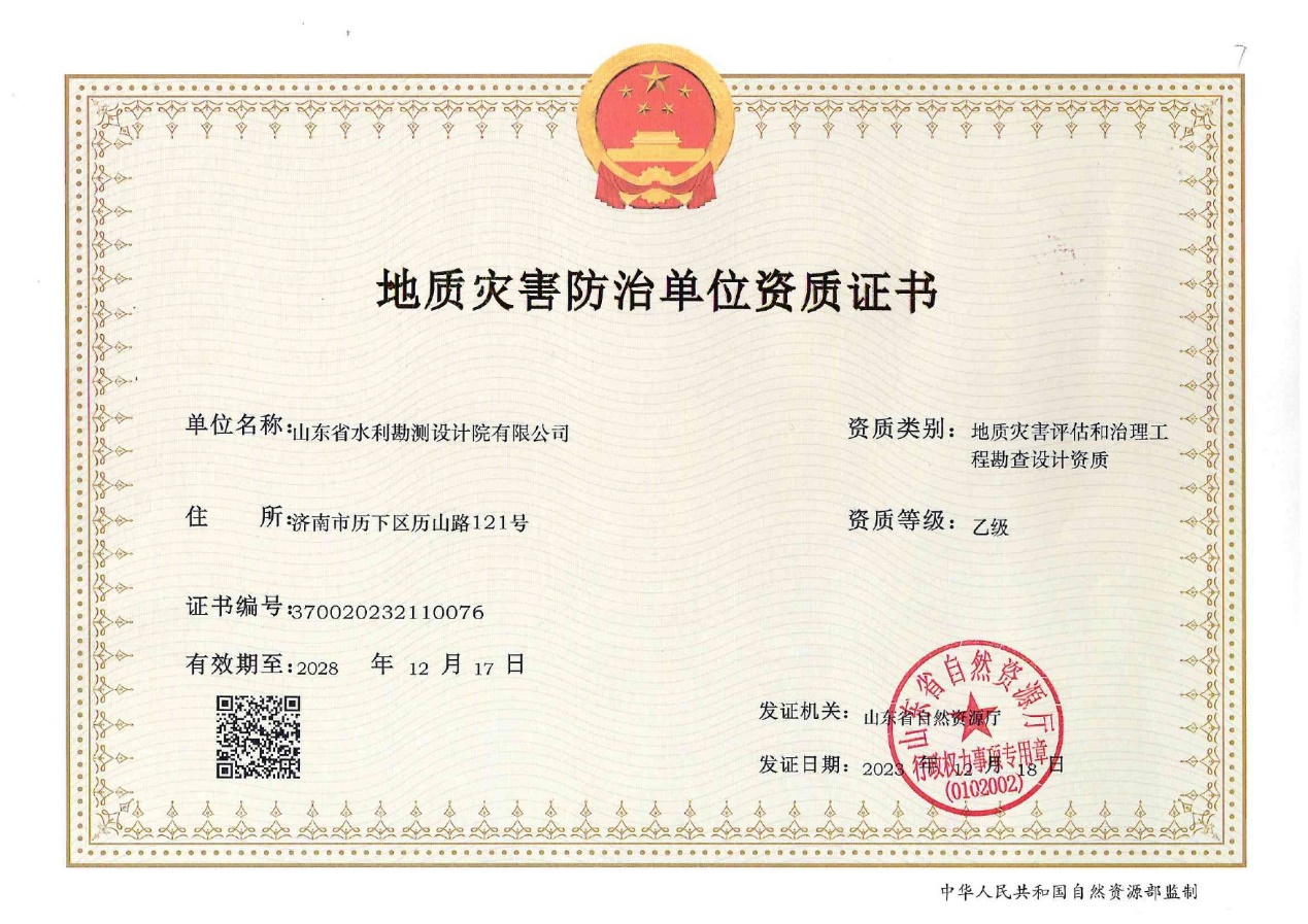 近日,濟(jì)南市自然資源和規(guī)劃局對(duì)地質(zhì)災(zāi)害防治單位資質(zhì)申請(qǐng)審查結(jié)果進(jìn)行了公告,山東省水利勘測(cè)設(shè)計(jì)院有限公司成功取得地質(zhì)災(zāi)害評(píng)估和治理工程勘查設(shè)計(jì)乙級(jí)資質(zhì)。這是《地質(zhì)災(zāi)害防治單位資質(zhì)管理辦法》新標(biāo)準(zhǔn)頒布后,濟(jì)南市首次公告審批通過單位名單。至此,公司的地質(zhì)災(zāi)害危險(xiǎn)性評(píng)估乙級(jí)資質(zhì)升級(jí)為地質(zhì)災(zāi)害評(píng)估和治理工程勘查設(shè)計(jì)乙級(jí),可以承擔(dān)的業(yè)務(wù)由原來的地質(zhì)災(zāi)害評(píng)估擴(kuò)大為地質(zhì)災(zāi)害評(píng)估和災(zāi)害治理工程勘查設(shè)計(jì)。
