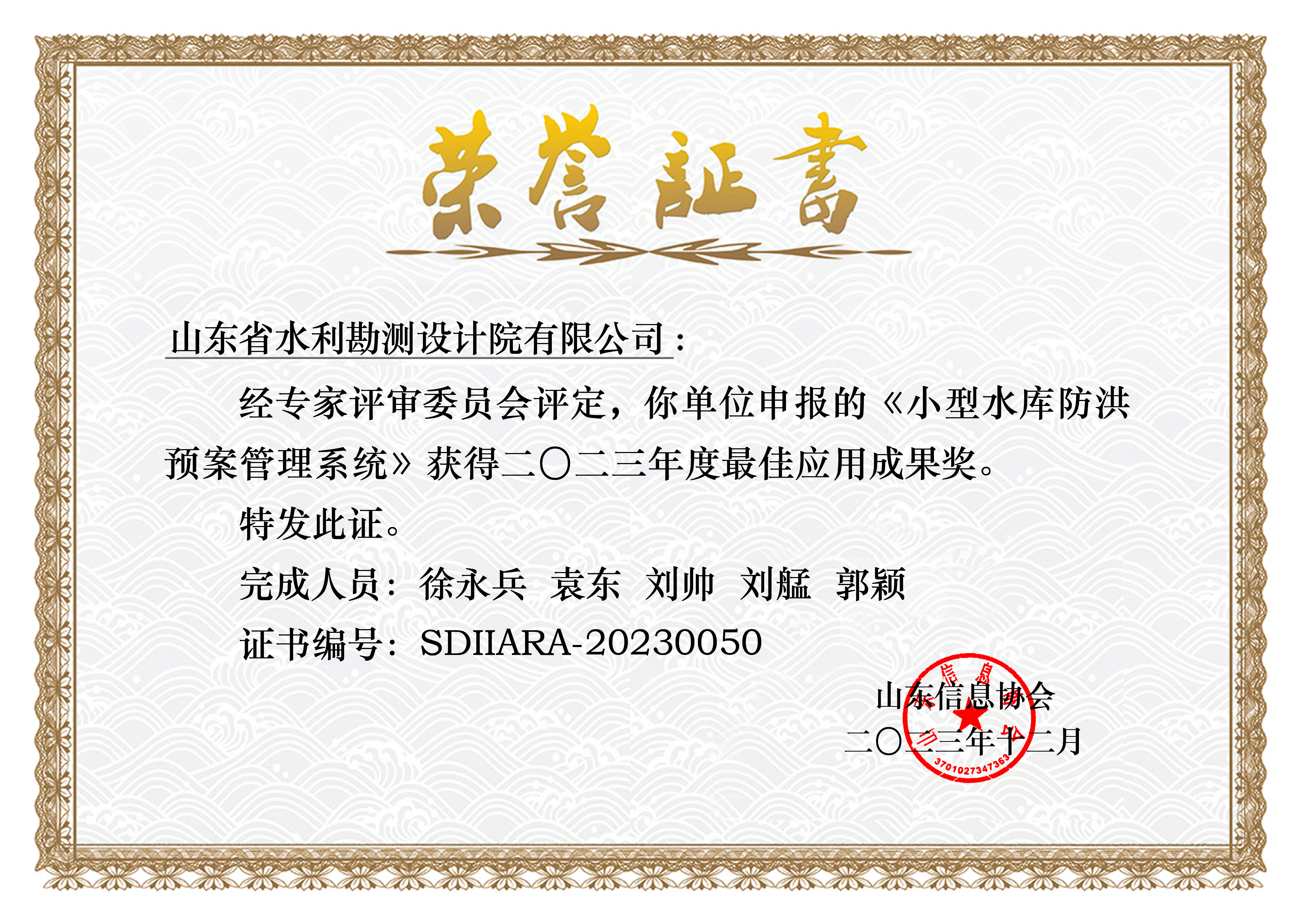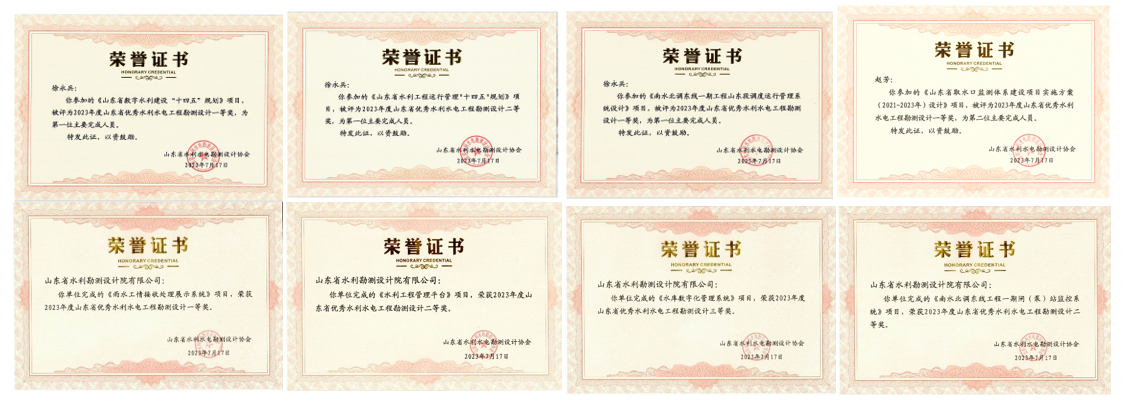 山東省優(yōu)秀水利水電工程勘測設計獎