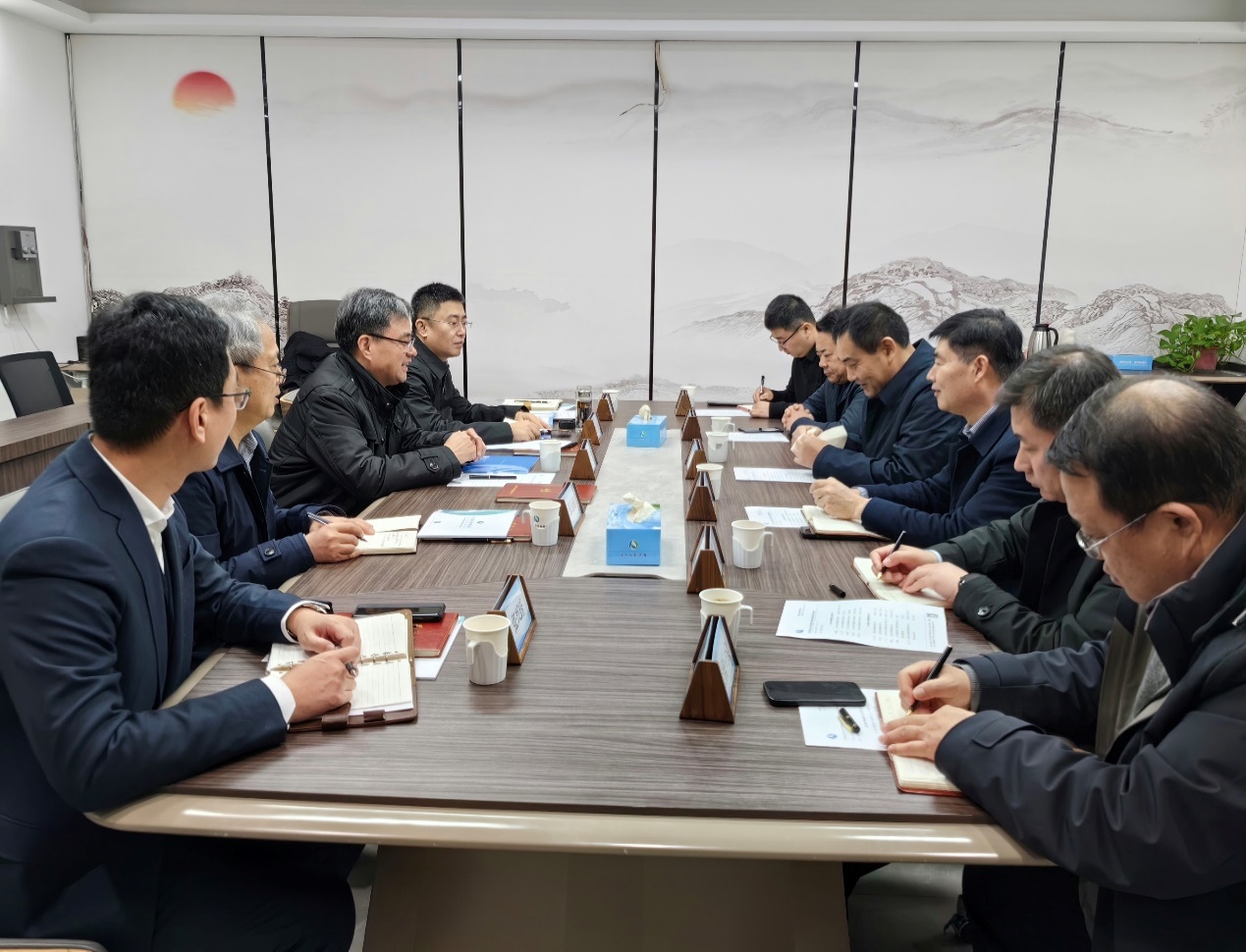 1月13日至14日,山東水設(shè)黨委副書記、董事、總經(jīng)理李貴清(主持公司全面工作)一行到臨沂水利集團(tuán)有限公司座談交流,臨沂水利集團(tuán)有限公司黨委書記、董事長張韜出席座談會(huì)。