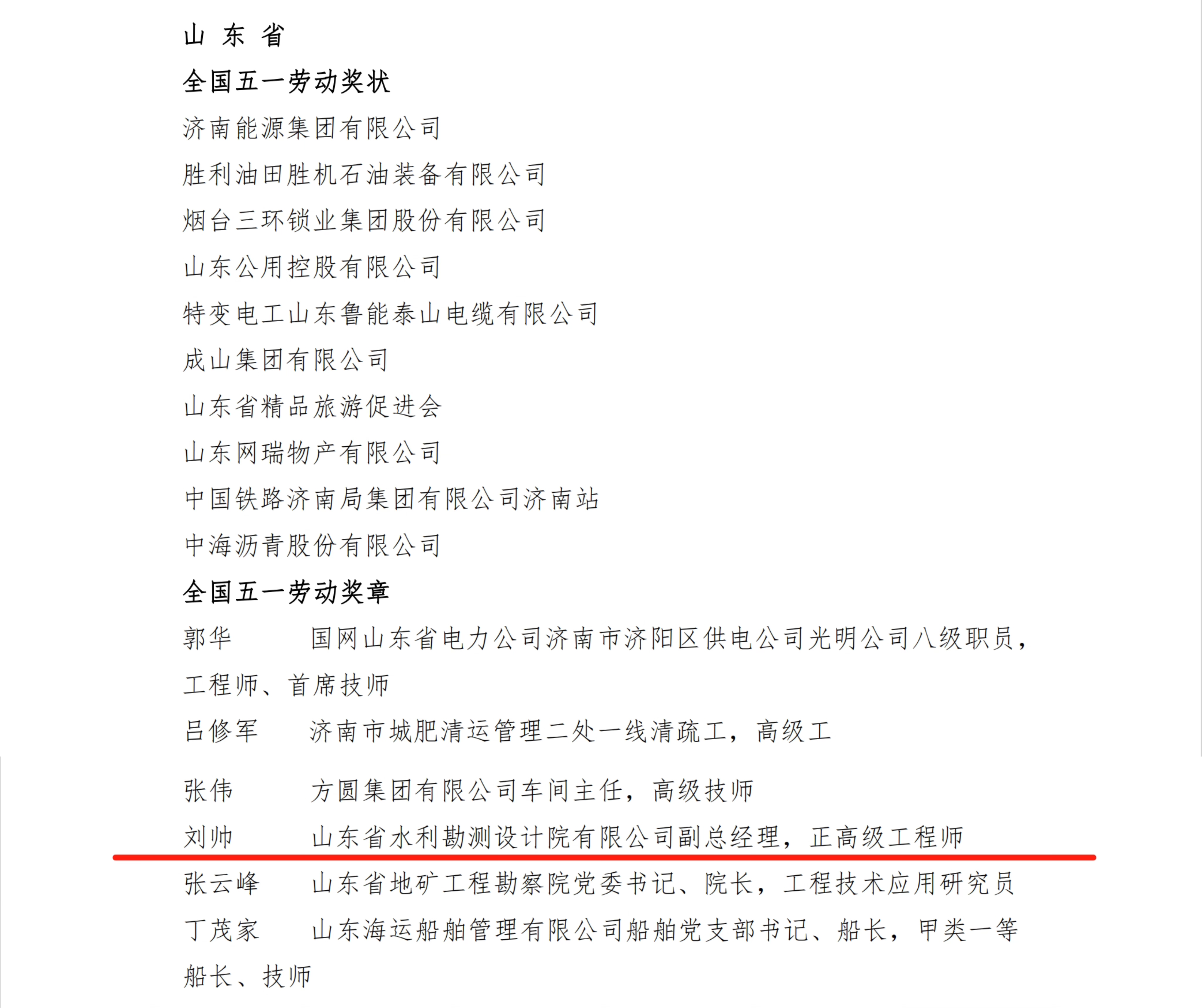喜報(bào)!山東水設(shè)劉帥榮獲2024年全國(guó)五一勞動(dòng)獎(jiǎng)?wù)?/h1>